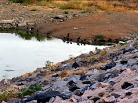 Presenciamos algumas pessoas, realizando o trabalho de pesca artesanal, tentando pegar as poucas especiais de peixes vivos naquele reservatório.
