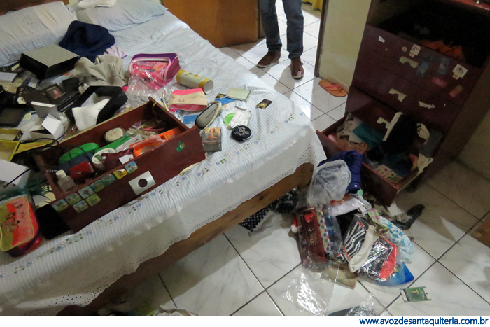 Roupas, equipamentos, acessórios e gavetas ficaram espalhadas pelos quartos, que foram revirados, provavelmente, em busca de dinheiro para usos ilícitos, como é comum em arrombamentos e furtos. Por milagre, nada foi levado do local.