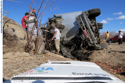 Segundo informações, o quiteriense Raimundo Nonato Galdino de Mesquita, 45, conhecido como Codó, estava conduzindo o caminhão Iveco Eurocargo 170E2, de cor branca e placas OCT-4589, pertencente à Água Mineral Acácia, quando foi surpreendido com algumas pedras na estrada, que são colocadas por bandidos para interceptar veículos e praticarem assaltos.