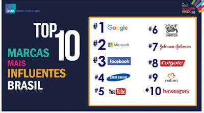 Samsung e Youtube vêm em quarto e quinto lugar respectivamente. Outras marcas listadas no ranking são Nestlé, Johnson&Johnson e Colgate. Além da forte presença de marcas internacionais no ranking, as brasileiras Natura e Havaianas marcam presença entre as 10 mais influentes.