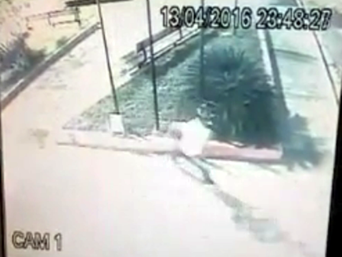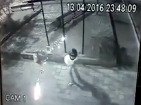 Na 1ª foto, 1º coquetel é atirado; Na 2ª, o vândalo foge, após atirar 03 coquetéis