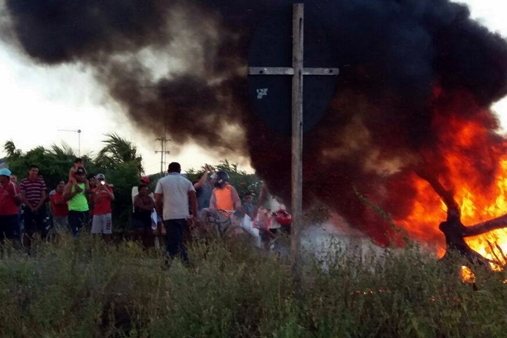 Os manifestantes queimaram galhos de arvores e pneus na pista. Duas viaturas da PRE e uma da polícia militar do 3º BPM de Sobral estavam no local.