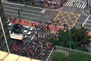 Em nota, o MTST disse que a “Polícia Militar do estado de São Paulo reprime com violência ocupação realizada agora a pouco pela Frente Povo Sem Medo e o MTST no escritório regional da Presidência da República”.