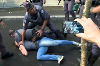 Outros manifestantes foram atrás para tentar evitar a detenção. A polícia usou bombas de gás e spray de pimenta para dispersar a multidão. Uma guarita móvel da PM foi derrubada, e a estação Consolação do Metrô foi pichada.