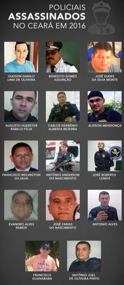 Nesta quinta-feira, 30, o primeiro semestre de 2016 foi fechado com as mortes do sargento Guanabara, do cabo Joel e do soldado Antônio Filho, todos durante confronto com criminosos em Quixadá, cidade localizada a 167 quilômetros de Fortaleza. O mês de junho, com quatro mortes, foi o que mais teve agentes de segurança assassinados.