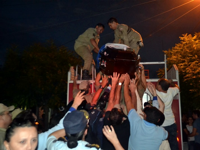Viaturas do Corpo de Bombeiros seguiram com os corpos do cabo e dos soldados até o cemitério municipal, enquanto uma multidão fez o acompanhamento. Amigos, familiares e até mesmo populares choraram bastante, uma demonstração da tristeza.