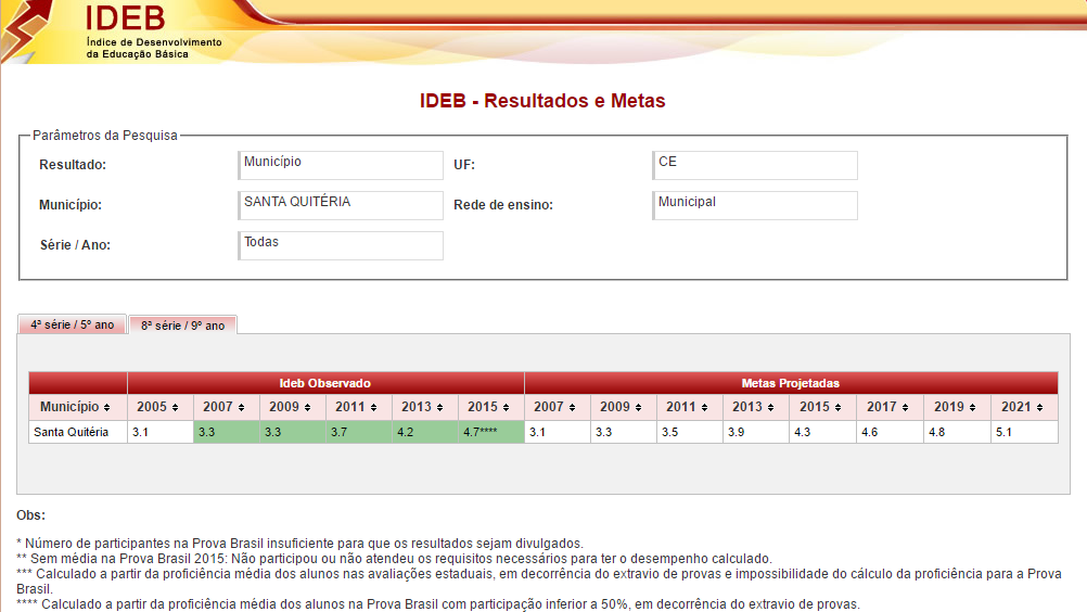 Já os alunos do 9º do ensino fundamental II conseguiram superar a meta prevista que era de 4.3, chegando ao número de 4.7. Com essa média, os alunos do 9º ano conseguiram atingir a projeção do ano de 2017.