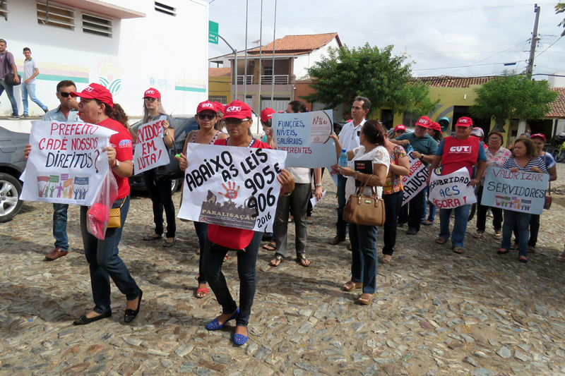 Os servidores carregavam faixas, cobrando o reajuste de seus salários, que não ocorre há 04 anos, bem como a revogação das Leis 905 e 906/2016, que aumenta os salários do prefeito, vice e vereadores a partir de janeiro de 2017.