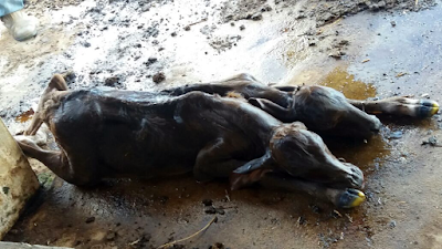 Segundo informações, um fazendeiro estava com dificuldades para fazer o parto de uma vaca e pediu ajuda de algumas pessoas. Logo em seguida, foi constatado que o bezerro já havia morrido e decidiram retirar.