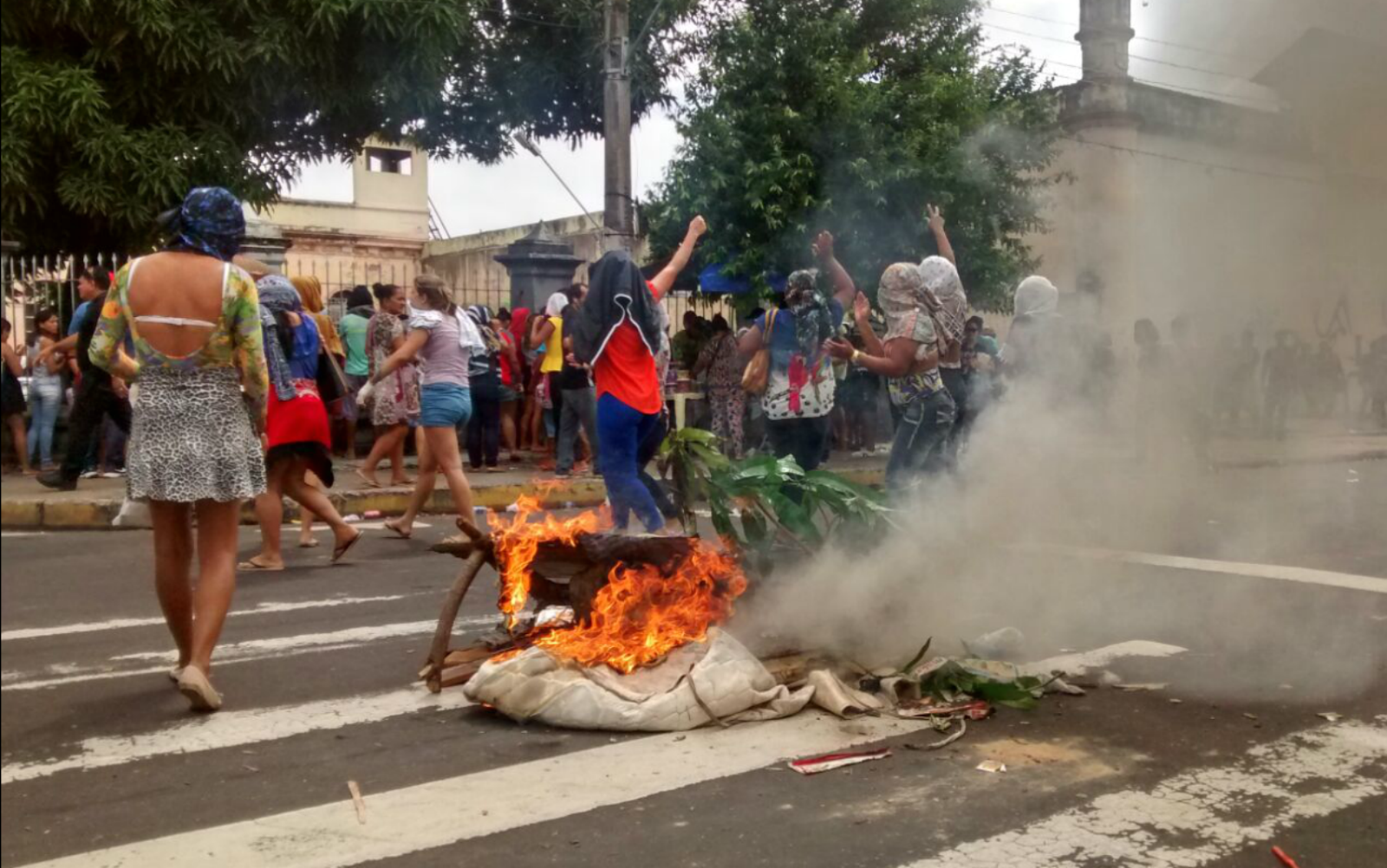 Fora da cadeia pública, familiares iniciaram um tumulto em busca de informações sobre os detentos. O Batalhão de Choque interveio com spray de pimenta. Segundo informações da GloboNews, os familiares foram avisados pelos próprios presos, a partir de ligações feitas de dentro das cadeias, de que houve uma rebelião.