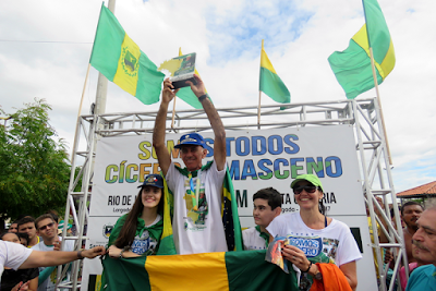 Lá, um público ainda maior o esperava. Ao som do tema da vitória, do seu ídolo Ayrton Senna, Cícero rompeu a fita simbólica e subiu ao pódio ao lado da família, completando mais um grande desafio da sua vida.