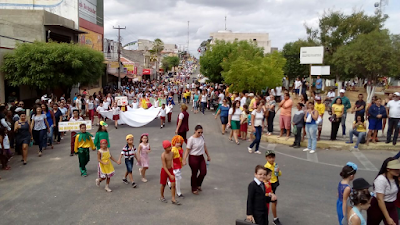 Estudantes das escolas municipais, estaduais e particulares se concentraram em formato de pelotões, no Paço Municipal, onde foram hasteadas as bandeiras, com a presença do vice-prefeito Braguinha, presidente da Câmara Joel do Braga, padres Fábio e Elânio e outras autoridades.