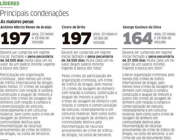 Entre os sentenciados, que devem cumprir a pena em regime fechado, 11 estão presos desde a deflagração da operação, um está foragido e 13 estão em liberdade com medidas cautelares. Conforme o processo, a investigação policial, iniciada em 2013, identificou a divisão em núcleos do grupo criminoso associado para o tráfico internacional de drogas, contrabando de armas, desvio de insumos químicos e lavagem de dinheiro.