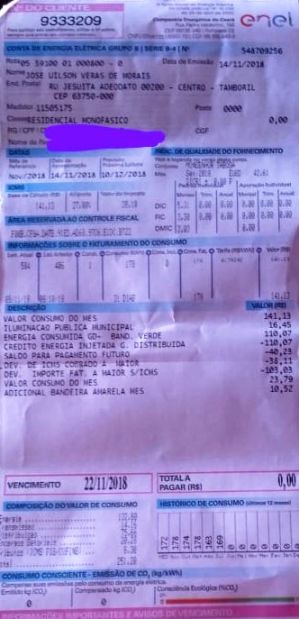 O professor Uilson Morais, é um dos exemplos de que a energia solar faz bem tanto para o bolso quanto para o planeta. Proprietário da GM LED, empresa que atua no ramo, ele instalou em sua residência painéis de energia solar há pouco mais de seis meses. Antes, a família formada por três pessoas gastava média R$ 260,00 por mês só com energia. Ele relatou ao blog que logo no primeiro mês, o valor da cobrança de energia caiu para apenas R$ 18, comprovando a eficácia da economia. Já neste mês de novembro a conta veio zerada. Sem nenhum valor a ser cobrado.