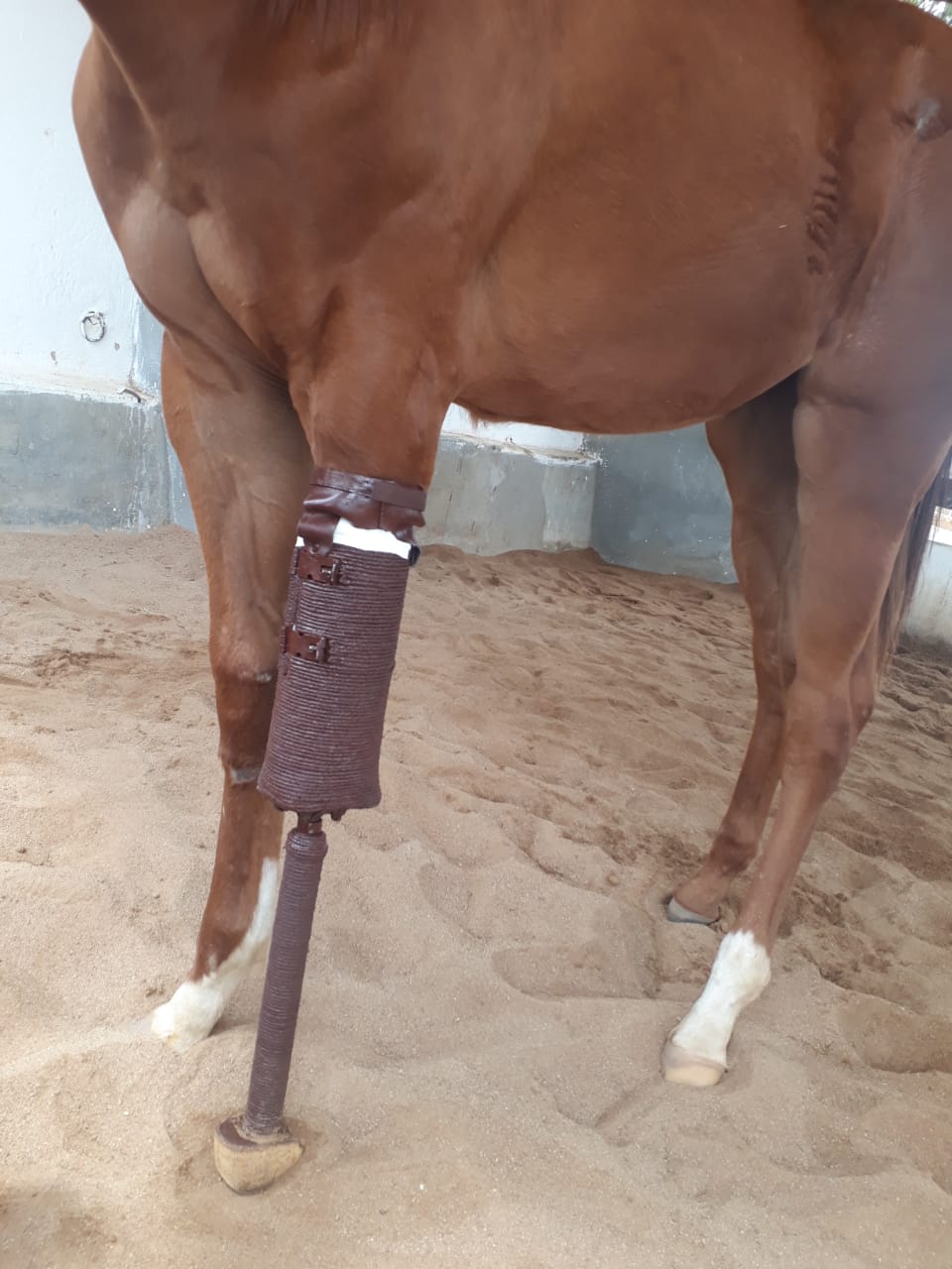 Ao tomar conhecimento sobre o caso de uma égua que infelizmente teve uma das patas amputada após uma queda, Alexandre logo se propôs construir uma prótese para o animal. A égua que tem pouco mais de um ano de idade, já recebeu a prótese construída com o mesmo tipo de material usado para a prótese do jovem de 15 anos.