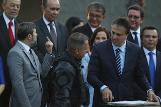 O novo secretário estava acompanhado por grupo de agentes que fazem segurança no sistema penitenciário, também uniformizados. "A questão do uniforme é que a gente tem que estar pronto para agir", explicou o auxiliar de Camilo, que havia feito visitas a unidades na manhã de ontem. "Lá no Rio Grande do Norte eu tomei posse como secretário também uniformizado. Meu terno é o uniforme. Você sempre vai me ver assim."