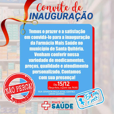 Situada na rua Senador Paula, 156, no Centro, a farmácia contará com uma ampla variedade de medicamentos éticos, genéricos e similares, além de um ótimo preço, atendimento personalizado e outros serviços, como aferição de pressão e teste de glicemia.