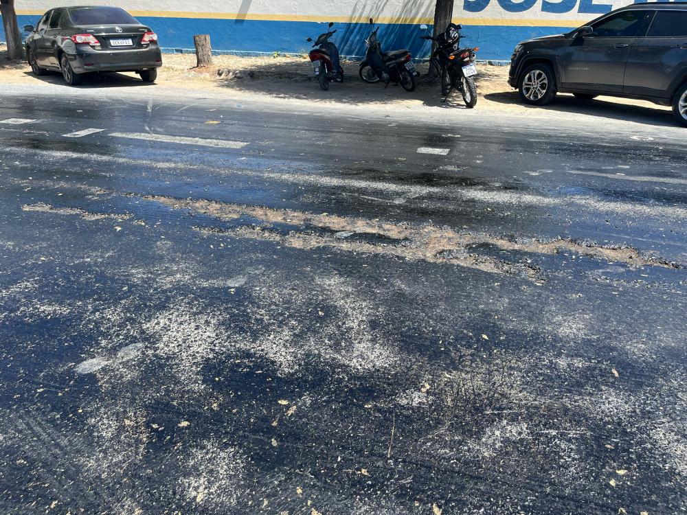 "A alta temperatura acaba influenciando na dilatação da pavimentação e assim esse ligante tende a migrar a superfície. E no momento que tende a migrar para superfície, ele fica exposto por conta do calor e fica aparecendo. E o tráfego intenso de veículos ajuda a arrancar o asfalto", explicou o engenheiro Bruno Brito, especialista em asfalto, sobre o processo de exsudação (suar) que o material sofreu ali.