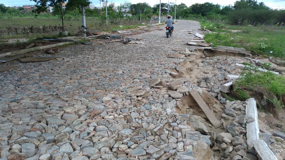 Raimundo relatou em entrevista ao site Santa Quitéria Notícias, que foi surpreendido pelo volume das águas. Ele comenta sobre os danos do calçamento que vai para a Cohab: “Ali, durante a descida da água, se tirou o aterro, e foi caindo um fio de pedra, levando boa parte do calçamento em determinado trecho, realmente danificou demais”.