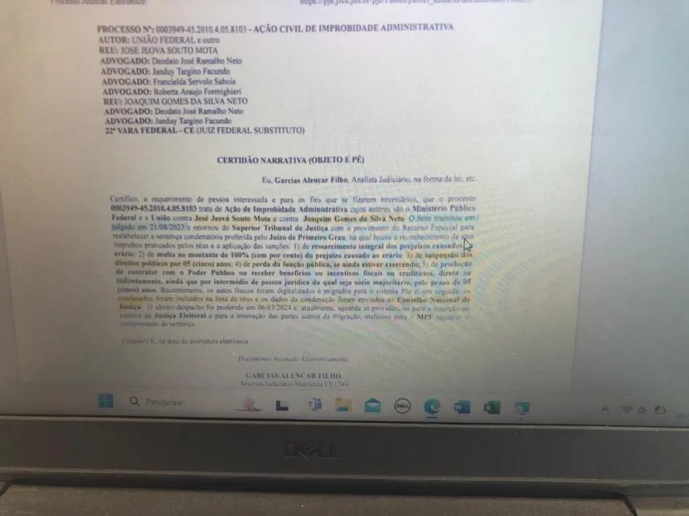 O deputado estadual Jeová Mota (PDT) teve o mandato cassado e os direitos políticos suspensos por decisão do juiz federal da 22ª Vara, com sede em Crateús. A decisão não pode mais ser contestada.
