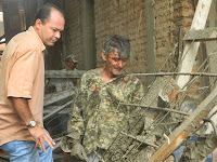 A laje de uma construção na rua Antônio Sabóia, no Centro de Santa Quitéria, desabou hoje pela manhã, por volta das 9 horas, ferindo dois dos três operários que estavam trabalhando naquele momento.A obra, que é um ponto comercial, fica vizinho a antiga casa lotérica. O forro está em fase de construção. Um dos trabalhadores estava na parte de cima da laje e outro em baixo quando houve o desabamento. Antônio Carlos Sousa, 56 anos, saiu bastante ferido, com uma possível fratura em um dos braços e com muitas dores nas costas.