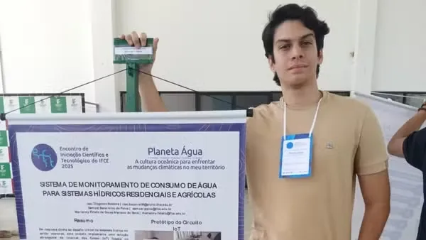 Em outra cidade do Sertão Cearense, mas com a mesma preocupação sobre os recursos hídricos, o estudante Isac Diógenes Bezerra, de 22 anos, celebra o 2° lugar no Prêmio Jovem Cientista na Categoria Estudante do Ensino Superior. Ele criou um sistema com Internet das Coisas para monitorar o consumo de água na cidade de Jaguaribe, cidade que fica a cerca de 290 quilômetros de Fortaleza.