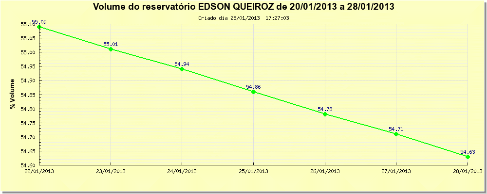 Acompanhe o gráfico dos últimos 7 dias no açude Edson Queiroz: