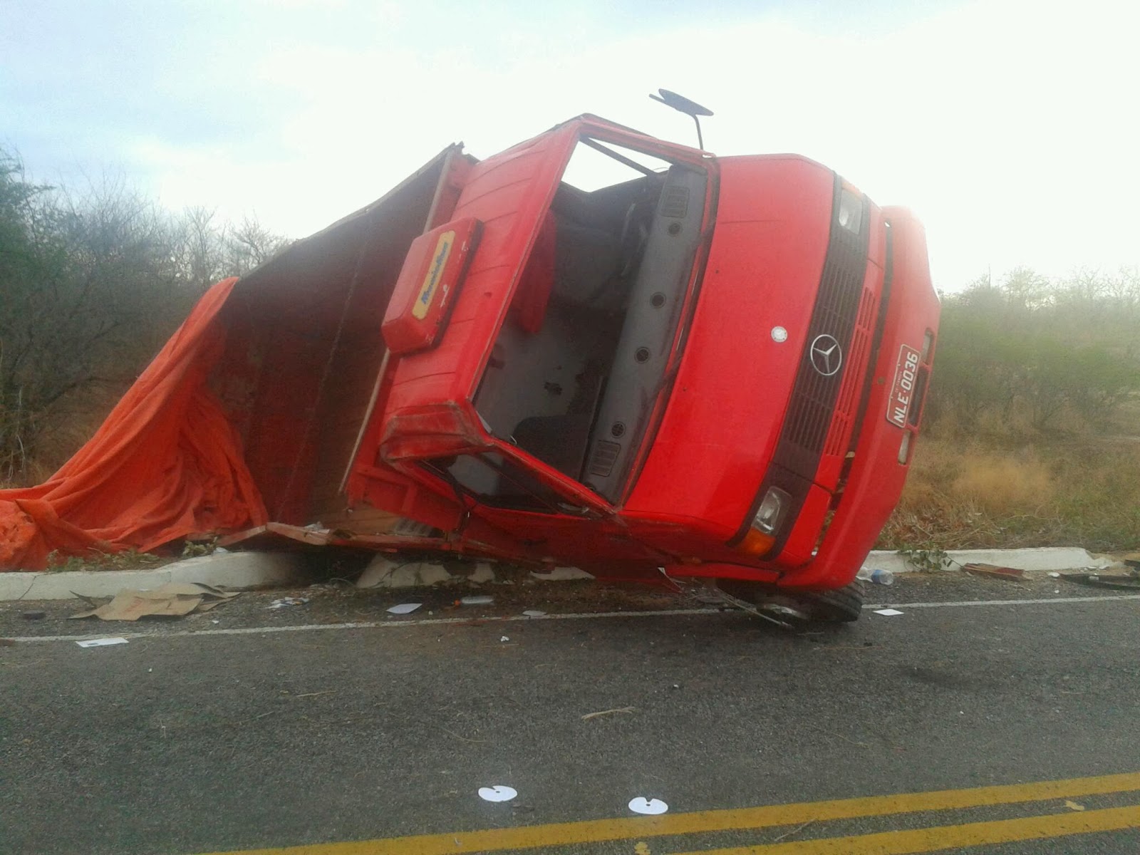 Caminhão de mudanças tomba na CE-176, na madrugada deste sábado
