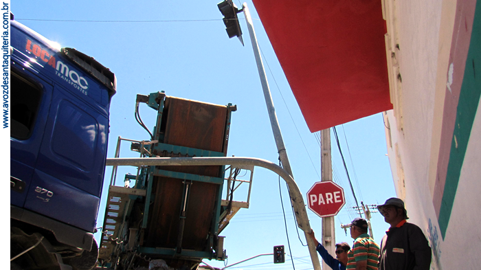 Carreta colide com semáforo no centro de Santa Quitéria